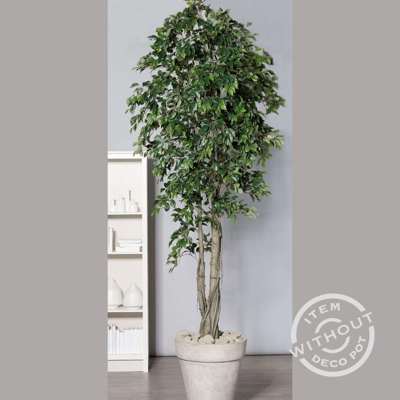 120 cm - Ficus artificial decorativ Benjamina verde pe trunchi natural din lemn in ghiveci negru din plastic. Dimensiunea ghiveciului 15x13 cm. Acest copac artificial este perfect pentru a adauga culoare si ofera un aspect proaspat spatiului interior sau exterior. Plante artificiale decorative ideale pentru orice spatiu si nu necesita ingrijire.
