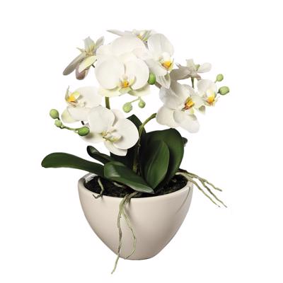 Adauga culoare decorului casei tale cu aceasta orhidee artificiala in ghiveci cu aspect 100% natural, chiar si la atingere. Orhideea artificiala in ghiveci are 35 cm inaltime. Fie ca vorbim de living, dormitor sau chiar birou, aceasta orhidee artificiala in ghiveci ofera un accent cochet si este o alegere potrivita pentru un decorr modern si elegant. Planta artificiala are frunze artificiale si flori artificiale cu variatii de culoare cu aspect complet realist. Aceasta planta artificiala decorativa este fabricata din materiale de calitate, nu are nevoie de ingrijire zilnica si isi va pastra aspectul natural pentru o perioada lunga de timp. Este ideala pentru spatiile fara lumina naturala si pentru cei care nu au timpul necesar pentru a avea grija de plante. Continut: 1 planta artificiala si 1 ghiveci ceramic bej Inaltime orhidee artificiala in ghiveci: 35 cm